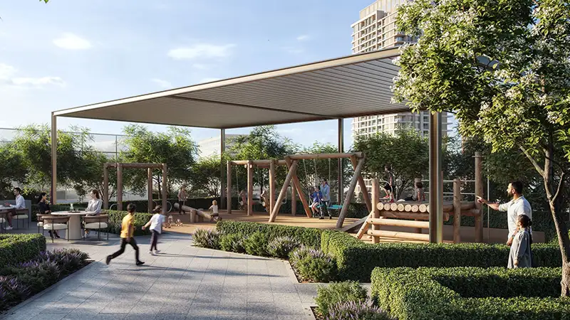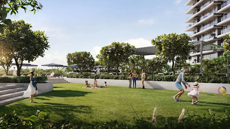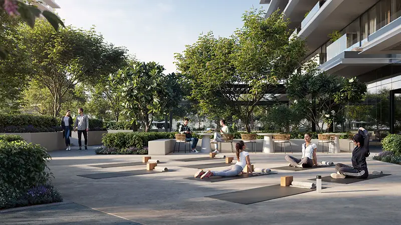 Moreover, the high-class façade stands amongst the Greengate, a soothing natural paradise located in Dubai Creek Harbour, which supplies peaceful parkland areas alongside serenity and wellness to your daily routine. The green micro-community provides an environment for relaxation and family bonds while allowing you time to connect with nature. Here, residents can start the day practising yoga at the dedicated indoor space and relax at meditation areas and exercise through cycling or running tracks. Homeowners with children will be delighted because it provides multiple spaces designed for their enjoyment such as an exclusive children’s playground and climbing feature. Family weekends become adventurous and energized experiences because of outdoor fitness areas and sports courts combined with skate parks found throughout the community.