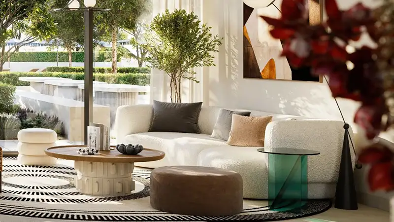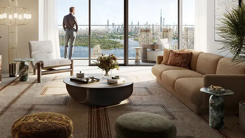 Modern architecture elevates everyday living at ease through its careful design which raises its value through contact with the environment. The building communicates everlasting aesthetic appeal through its smooth design elements which combine natural earth tones with expansive glass walls. Quiet sophistication greets you immediately when you step into high-ceilinged lobbies and the design of the building expresses the dual qualities of urban innovation with nature-infused tranquillity that define Dubai Creek Harbour. Every exterior design at the building communicates with its environmental setting with purposeful intent to enhance your spatial awareness of the local nature scene which includes green parks, canal reflections and golf course landscapes.