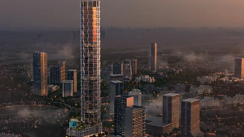 Standing above 60-storey high as the tallest landmark in the region with additional podium and rooftop levels, the façade redefines the skyline of JVC.