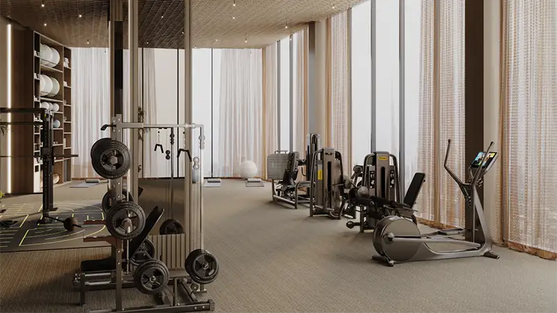 The rooftop and upper level pool deck is envisioned as an open-air sanctuary containing an infinity adult pool, secondary adult pool and clear continuous walkways that seem to entice movement and rest. Detailed walkways and expansive seating terraces around the pools, combined with glass edges, create the scene of social events, restful mornings and fun-filled afternoons for family. The design is considerate of the user comfort and climate performance-pool areas will be given solar reflective material and have accuracy on rising the ground level to control the perception of light and outlook; hence the deck is given the feel of lightness and comfort throughout the seasons. To complete the aquatic entertainment, there is the provision of the state-of-the-art indoor gym which is acoustically insulated furnished with separate male and female security and lockers and showers, hence, a private fitness seizure where regular practice is easily and pleasurably accomplished.